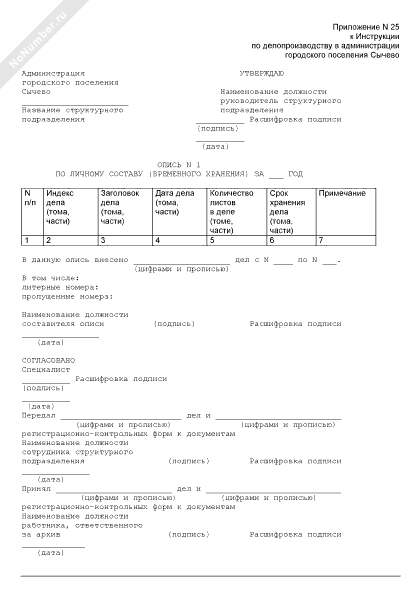 Опись по личному составу (временного хранения) в администрации городского поселения Сычево Волоколамского муниципального района Московской области