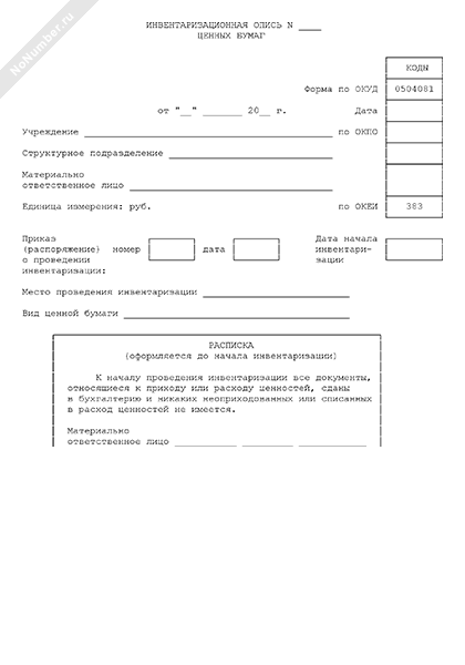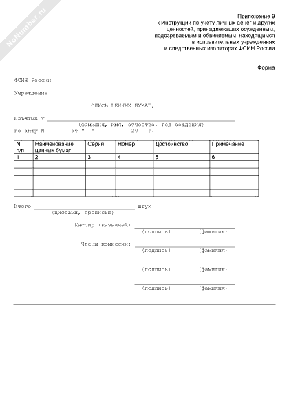 Опись ценных бумаг, изъятых у осужденного (подозреваемого или обвиняемого), если они не подлежат пересылке лицу или органу, в производстве которого находится уголовное дело