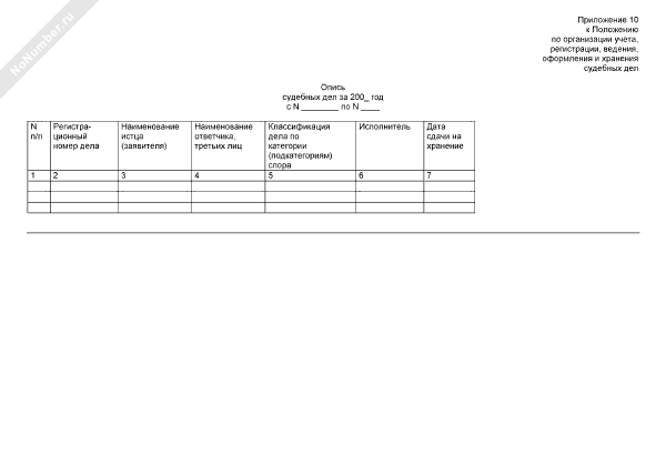 Опись судебных дел, хранящихся на рабочем месте в таможенном органе