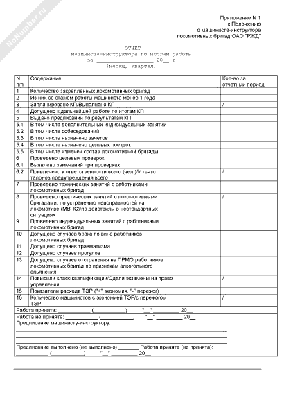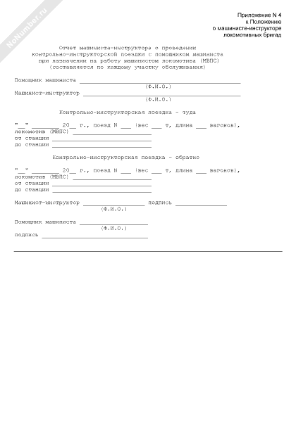 - 182Отчет машиниста-инструктора о проведении контрольно-инструкторской поездки с помощником машиниста при назначении на работу машинистом локомотива (МВПС)