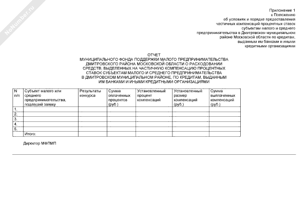 - 191Отчет муниципального фонда поддержки малого предпринимательства Дмитровского района Московской области о расходовании средств, выделенных на частичную компенсацию процентных ставок субъектам малого и среднего предпринимательства в Дмитровском муниципальном районе, по кредитам, выданным им банками и иными кредитными организациями