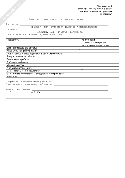 - 192Отчет наставника о результатах адаптации работника, вновь принятого в структурные подразделения территориальных органов Пенсионного фонда Российской Федерации