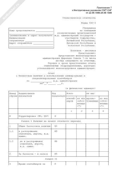 - 193Отчет о балансовом наличии и использовании универсальных и специализированных контейнеров по ж/д. Форма № КЭО-4