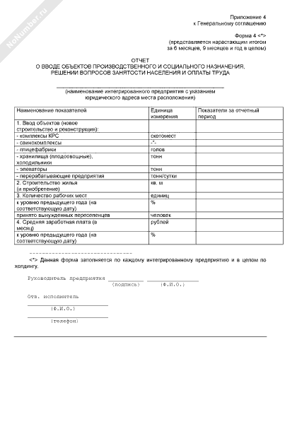 - 198Отчет о вводе объектов производственного и социального назначения, решении вопросов занятости населения и оплаты труда (приложение к генеральному соглашению о сотрудничестве в области обеспечения продовольственной безопасности города Москвы) (форма № 4)