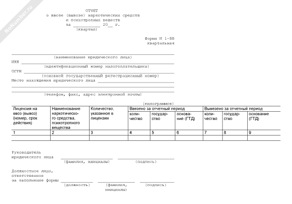 - 199Отчет о ввозе (вывозе) наркотических средств и психотропных веществ. Форма № 1-ВВ