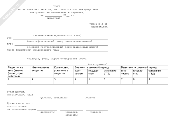 - 200Отчет о ввозе (вывозе) веществ, находящихся под международным контролем, не включенных в перечень наркотических средств, психотропных веществ и их прекурсоров, подлежащих контролю в Российской Федерации. Форма № 2-ВВ