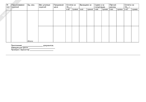 - 307Отчет о движении готовых изделий в кондитерском и других цехах. специализированная Форма № 12-ОПит