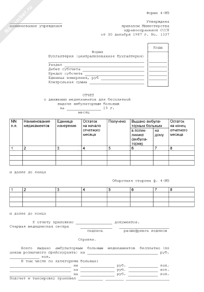 - 320Отчет о движении медикаментов для бесплатной выдачи амбулаторным больным. Форма № 4-МЗ
