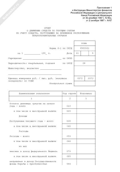 - 314Отчет о движении средств по текущим счетам по учету средств, поступающих во временное распоряжение правоохранительных органов. Форма № 4-1