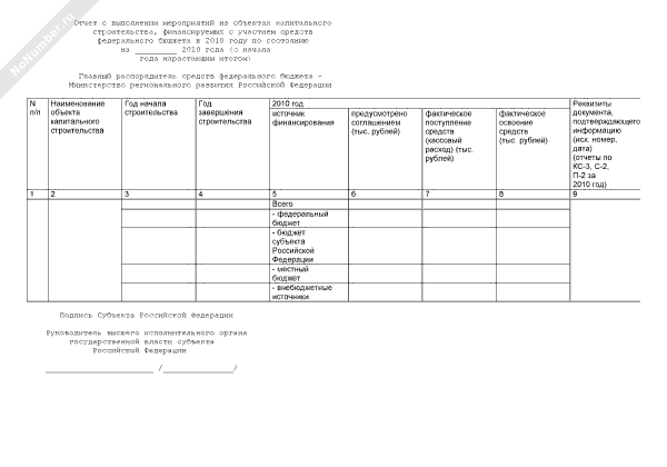 - 301Отчет о выполнении мероприятий на объектах капитального строительства, финансируемых с участием средств федерального бюджета в 2010 году (приложение к соглашению)