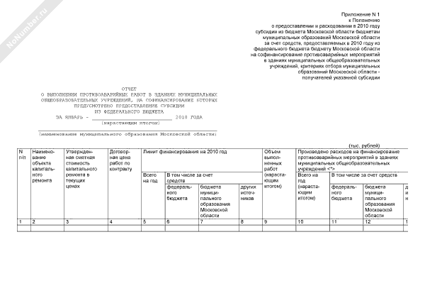 - 303Отчет о выполнении противоаварийных работ в зданиях муниципальных общеобразовательных учреждений Московской области, на софинансирование которых предусмотрено предоставление субсидии из федерального бюджета