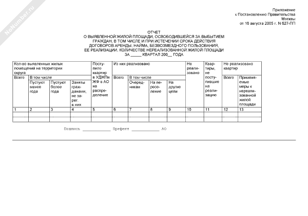 - 305Отчет о выявленной жилой площади, освободившейся за выбытием граждан, в том числе и при истечении срока действия договоров аренды, найма, безвозмездного пользования, ее реализации, количестве нереализованной жилой площади