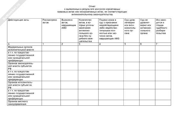 - 304Отчет о выявленных в результате контроля нормативных правовых актах или ненормативных актах, не соответствующих антимонопольному законодательству