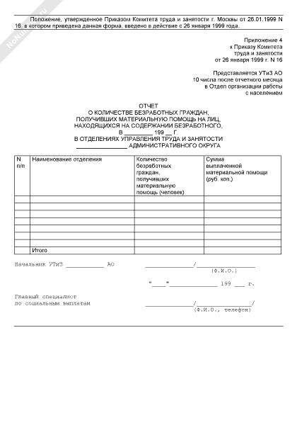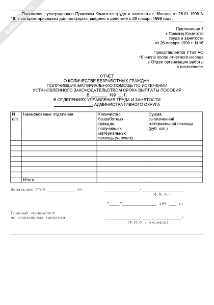 - 423Отчет о количестве безработных граждан, получивших материальную помощь по истечении установленного законодательством срока выплаты пособия в отделениях Управления труда и занятости административного округа г. Москвы