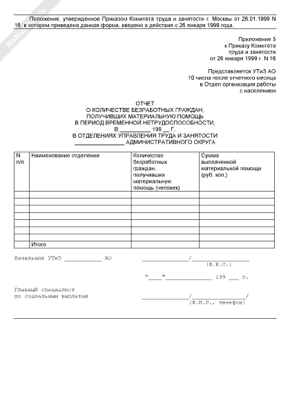 - 425Отчет о количестве безработных граждан, получивших материальную помощь в период временной нетрудоспособности в отделениях Управления труда и занятости административного округа г. Москвы