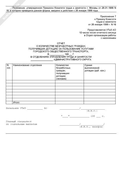 - 427Отчет о количестве безработных граждан, получивших дотацию за пользование услугами городского общественного транспорта в отделениях Управления труда и занятости административного округа г. Москвы