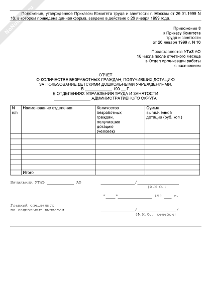 - 428Отчет о количестве безработных граждан, получивших дотацию за пользование детскими дошкольными учреждениями в отделениях Управления труда и занятости административного округа г. Москвы