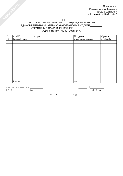 - 422Отчет о количестве безработных граждан, получивших единовременную материальную помощь в отделе Управления труда и занятости административного округа