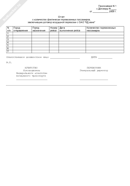 - 431Отчет о количестве фактически перевезенных пассажиров, заключивших договор воздушной перевозки с ОАО «КД авиа» (приложение к договору о предоставлении субсидий из федерального бюджета авиационным перевозчикам для возмещения недополученных ими доходов в связи с обеспечением перевозки пассажиров)