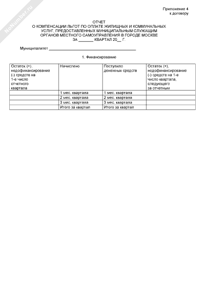 - 440Отчет о компенсации льгот по оплате жилищных и коммунальных услуг, предоставленных муниципальным служащим органов местного самоуправления в городе Москве (приложение к договору на возмещение выпадающих доходов от предоставления муниципальным служащим муниципалитета льгот по оплате жилищных и коммунальных услуг)