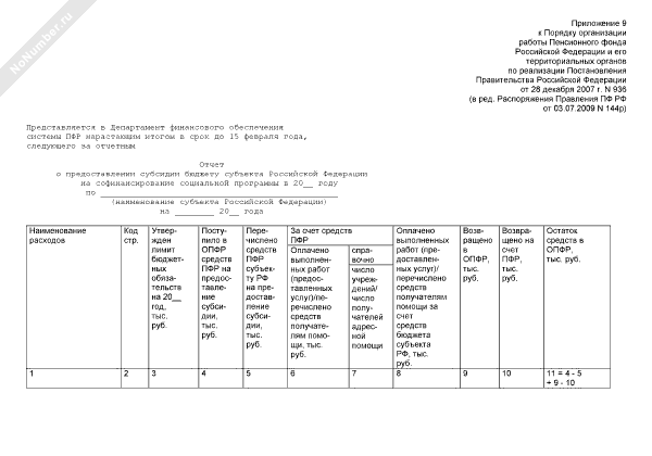 - 583Отчет о предоставлении субсидии бюджету субъекта Российской Федерации на софинансирование социальной программы по субъекту Российской Федерации (реализация статьи 14 Федерального закона от 21 июля 2007 г. № 182-ФЗ «О бюджете Пенсионного фонда Российской Федерации на 2008 год и на плановый период 2009 и 2010 годов»)