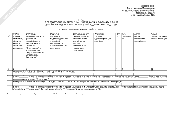 - 585Отчет о предоставлении ветеранам, инвалидам и семьям, имеющим детей-инвалидов, жилых помещений на территории Московской области