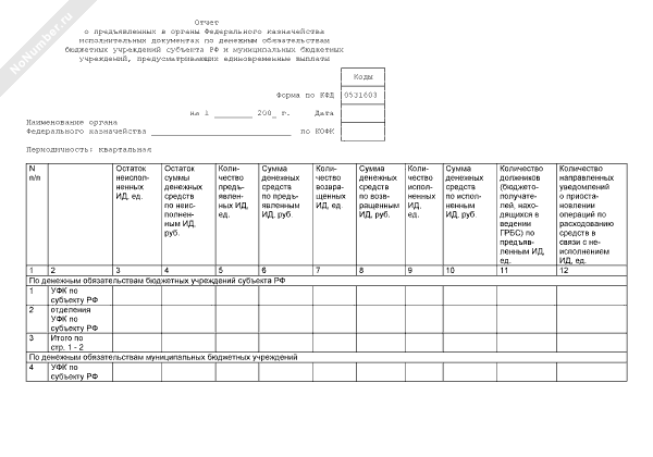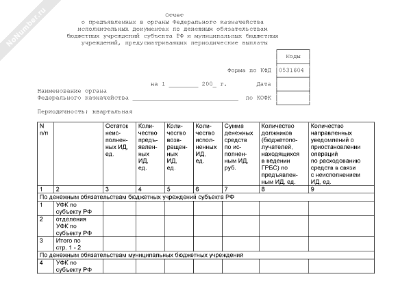 - 591Отчет о предъявленных в органы Федерального казначейства исполнительных документах по денежным обязательствам бюджетных учреждений субъекта РФ и муниципальных бюджетных учреждений, предусматривающих периодические выплаты