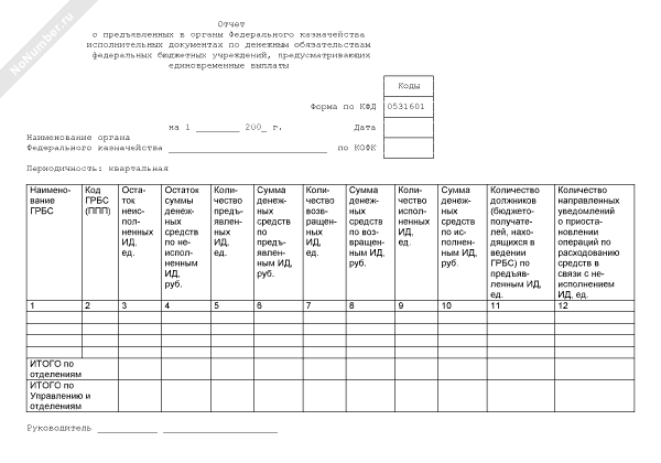 - 589Отчет о предъявленных в органы Федерального казначейства исполнительных документах по денежным обязательствам федеральных бюджетных учреждений, предусматривающих периодические выплаты