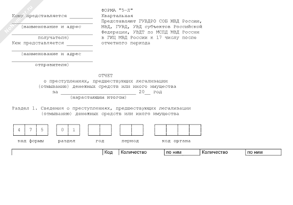 - 593Отчет о преступлениях, предшествующих легализации (отмыванию) денежных средств или иного имущества. Форма № «5-Л»