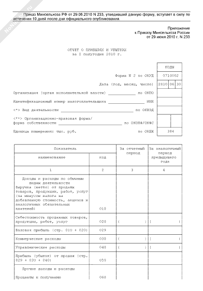 - 600Отчет о прибылях и убытках товаропроизводителей агропромышленного комплекса за I полугодие 2010 г (форма № 2)