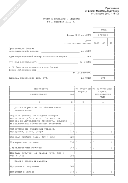 - 598Отчет о прибылях и убытках товаропроизводителей агропромышленного комплекса за I квартал 2010 г (форма № 2)