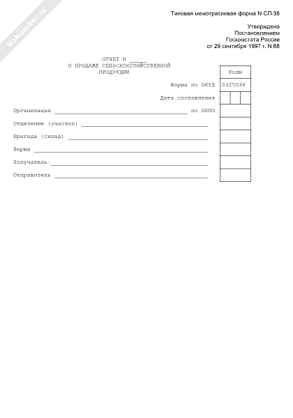 - 651Отчет о продаже сельскохозяйственной продукции (типовая межотраслевая форма № СП-38)