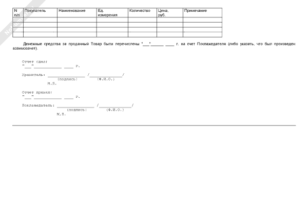 - 649Отчет о продаже товара за отчетный период (приложение к договору на хранение строительных материалов и продажу их по распоряжению поклажедателя)