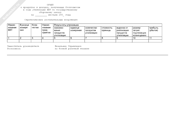 - 653Отчет о продуктах и доходах, полученных Роскосмосом в ходе утилизации вооружения и военной техники по государственному оборонному заказу. Форма № 1-ВБ