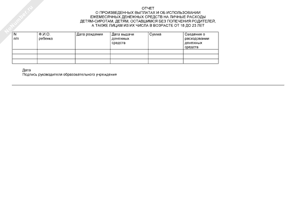 - 654Отчет о произведенных выплатах и об использовании ежемесячных денежных средств на личные расходы детям-сиротам, детям, оставшимся без попечения родителей, а также лицам из их числа в возрасте от 18 до 23 лет