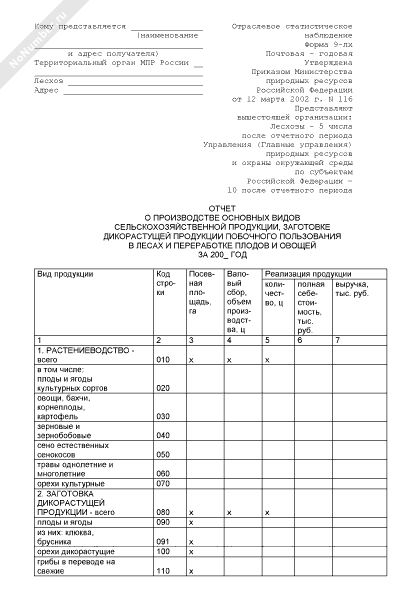 - 660Отчет о производстве основных видов сельскохозяйственной продукции, заготовке дикорастущей продукции побочного пользования в лесах и переработке плодов и овощей. Форма № 9-ЛХ