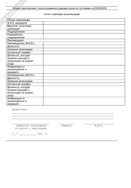 - 648Отчет о проверке рекомендаций кандидата на вакантную должность в структурное подразделение организации