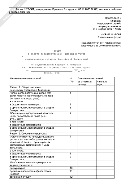 - 700Отчет о работе государственной инспекции труда по осуществлению надзора и контроля за соблюдением законодательства об оплате труда. Форма № 22-ГИТ