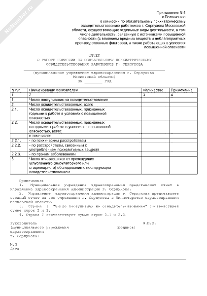 - 697Отчет о работе комиссии по обязательному психиатрическому освидетельствованию работников г. Серпухова Московской области