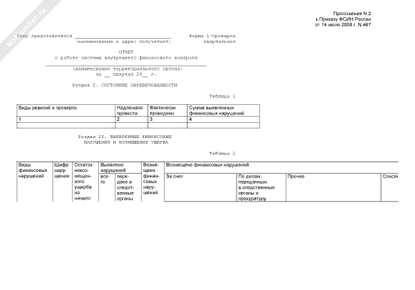 - 682Отчет о работе системы внутреннего финансового контроля. Форма № 1-проверка (квартальная)