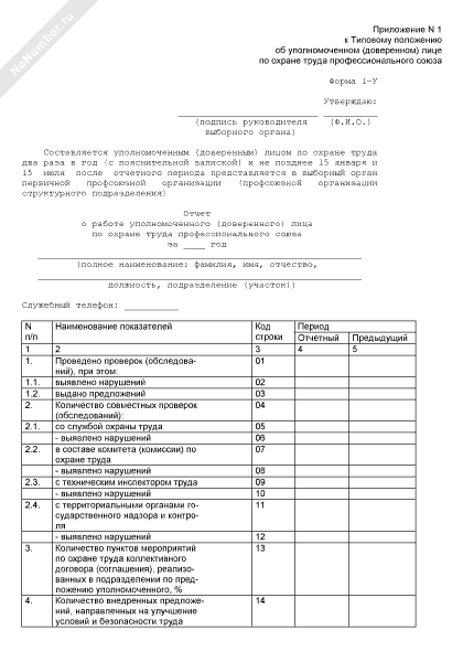 - 686Отчет о работе уполномоченного (доверенного) лица по охране труда профессионального союза. Форма № 1-У