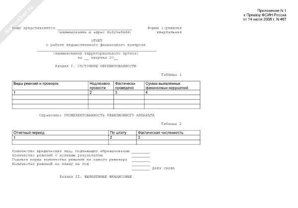 - 681Отчет о работе ведомственного финансового контроля. Форма № 1-ревизия (квартальная)
