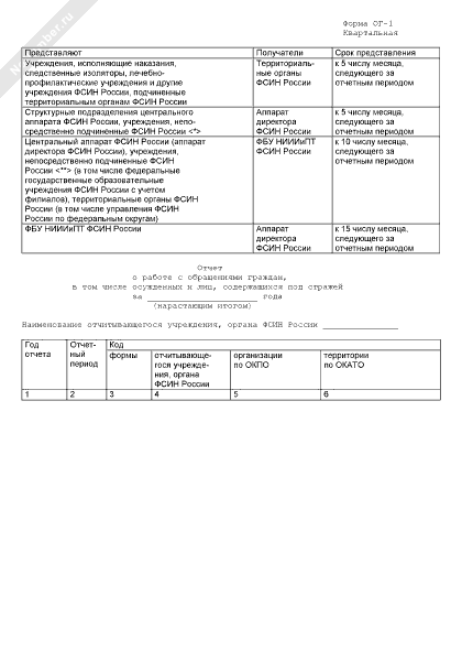 - 726Отчет о работе с обращениями граждан, в том числе осужденных и лиц, содержащихся под стражей. Форма № ОГ-1 (квартальная)