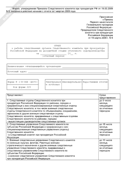 - 727Отчет о работе следственных органов Следственного комитета при прокуратуре Российской Федерации на досудебной стадии уголовного судопроизводства. Форма № 1-В-СКП (ДСУС)