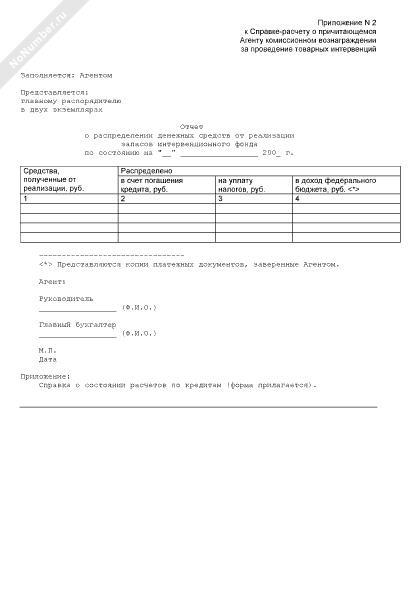 - 737Отчет о распределении денежных средств от реализации запасов интервенционного фонда (приложение к справке-расчету о причитающемся агенту комиссионном вознаграждении за проведение товарных интервенций)