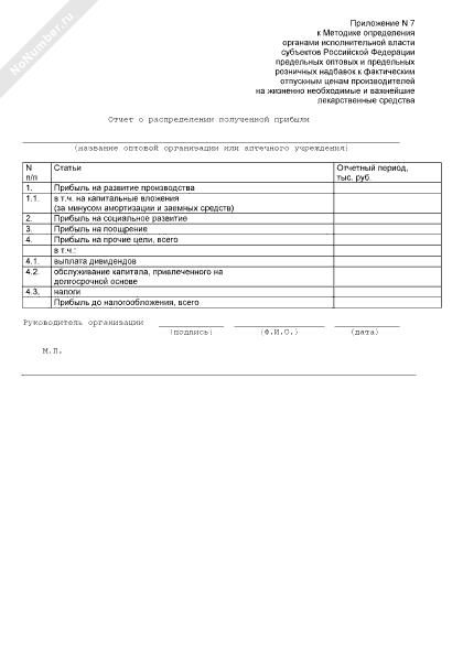 - 738Отчет о распределении полученной прибыли от реализации жизненно необходимых и важнейших лекарственных средств (ЖНВЛС)