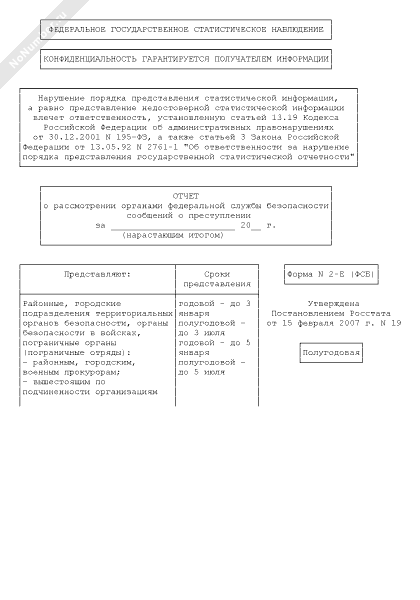 - 740Отчет о рассмотрении органами Федеральной службы безопасности сообщений о преступлении. Форма № 2-Е (ФСБ)