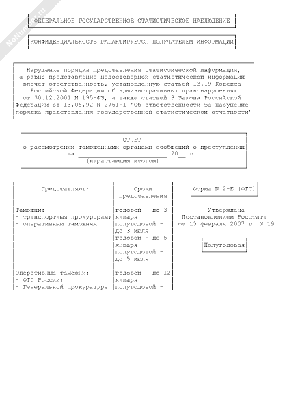 - 739Отчет о рассмотрении таможенными органами сообщений о преступлении. Форма № 2-Е (ФТС)