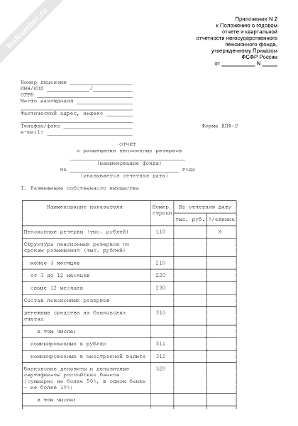 - 734Отчет о размещении пенсионных резервов негосударственного пенсионного фонда. Форма № НПФ-Р