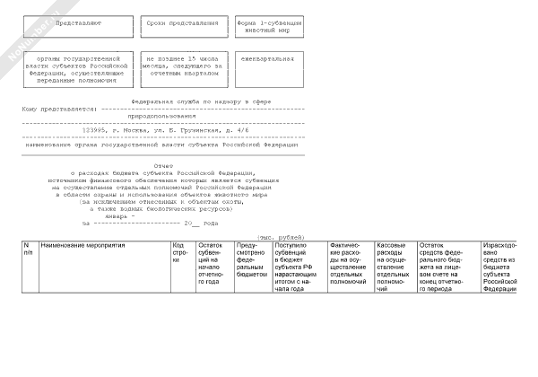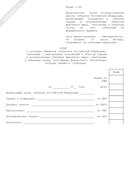 - 785Отчет о расходах бюджетов субъектов Российской Федерации, связанных с выполнением полномочий в области охраны и использования объектов животного мира, отнесенных к объектам охоты, источником финансового обеспечения которых являются субвенции. Форма № 1-ОХ